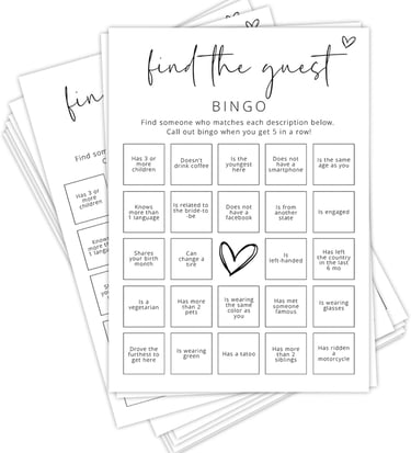 A classic twist on bingo, you can create personalized bingo cards with different wedding-related events or phrases. For instance, guests can mark off spots when they see someone catch the bridal bouquet or hear the couple's first dance song.