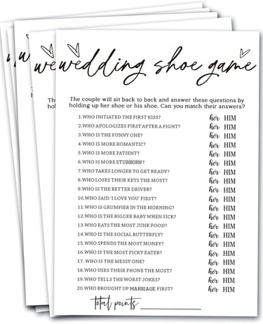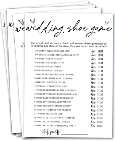 Gather fun facts and trivia about the couple and their families. Guests can form teams and answer questions like "Where did the couple first meet?" or "What’s the groom’s favorite childhood memory?"